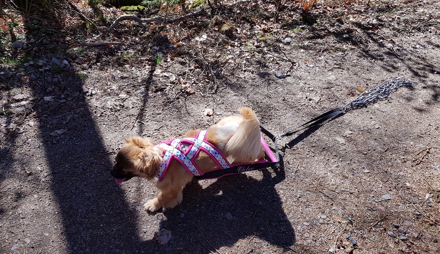 För att komma igång behöver man en så kallad wp-sele. Den är speciellt framtagen för att dra vikter med låg tyngdpunkt, och den ska vara måttsydd efter hundens egna mått.